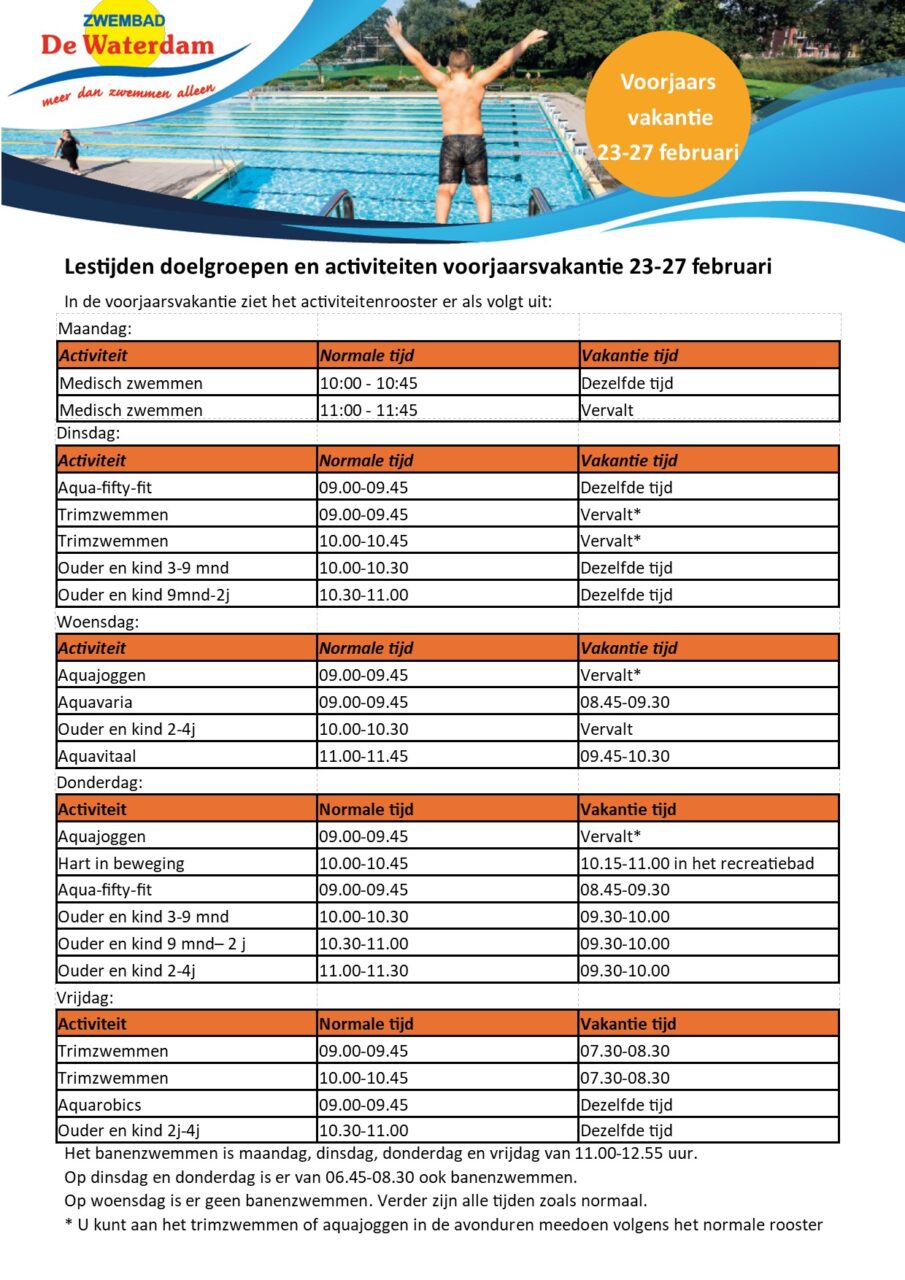 15 jaar geleden begonnen met zwangerschapszwemmen, later het lijf weer in vorm met aquarobics gekregen, en al snel met mijn baby gaan zwemmen het water is er warm genoeg voor en gister met mijn inmiddels 14 jarige zoon weer heerlijk gezwommen, wij wonen allang niet meer in de buurt maar voor dit zwembad blijven wij komen...
